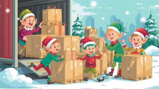 This is where the fun begins. Crate unloaders begin to set up the Elf Louise Workshop for gift wrappers. Folding tables, gift wrapping paper, scissors, and tape are uncrated and set up. Finally, the crates are opened and unloaded in preparation for the Toy Stockers to sort.